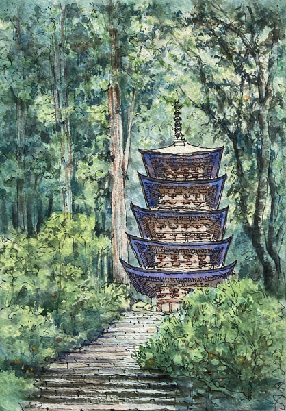 つまりこの五重塔を絵にしようと思えば参道下からその正面を描く以外に方法はないのだ。